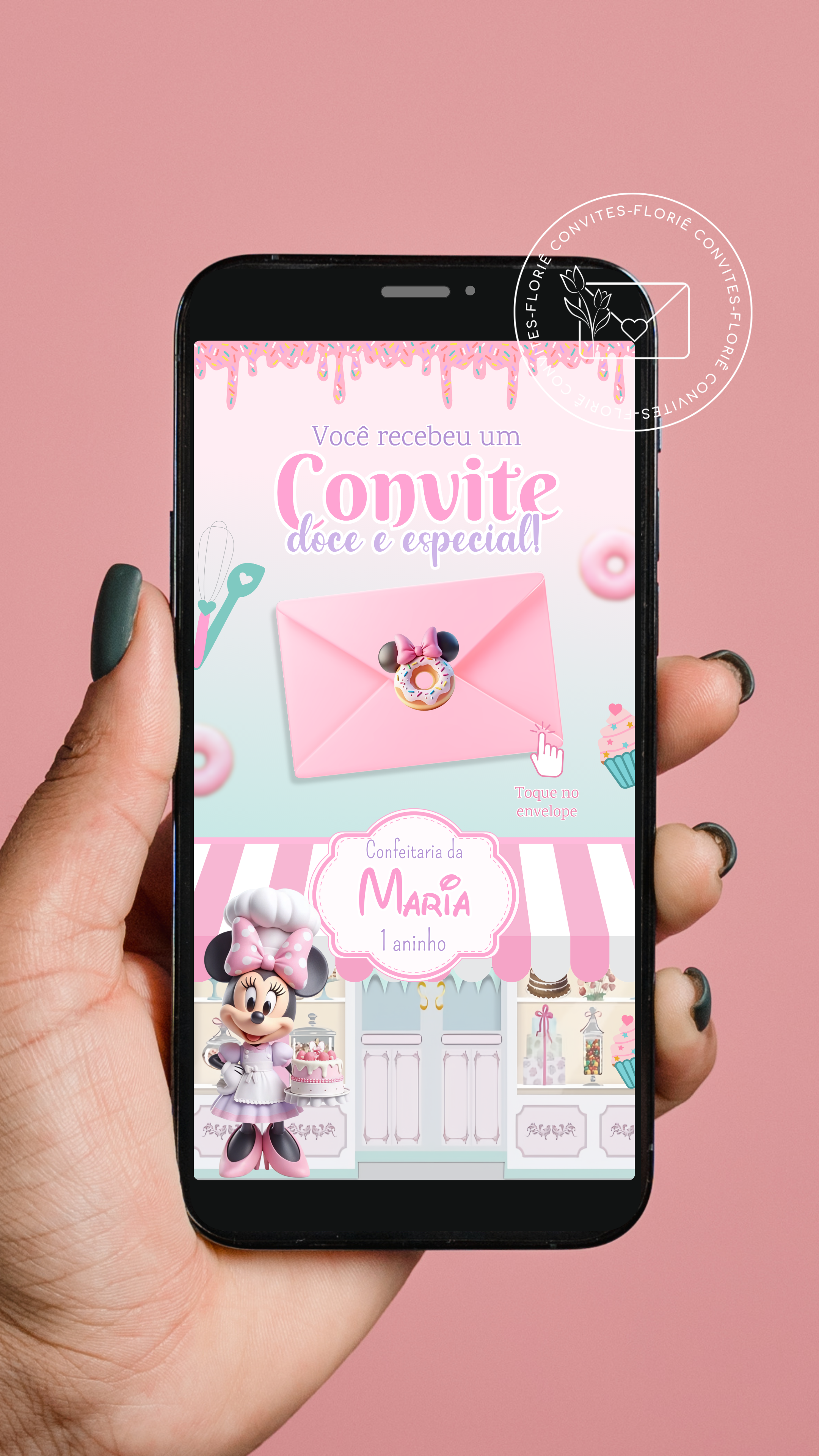 Convite interativo musical Minnie Confeiteira